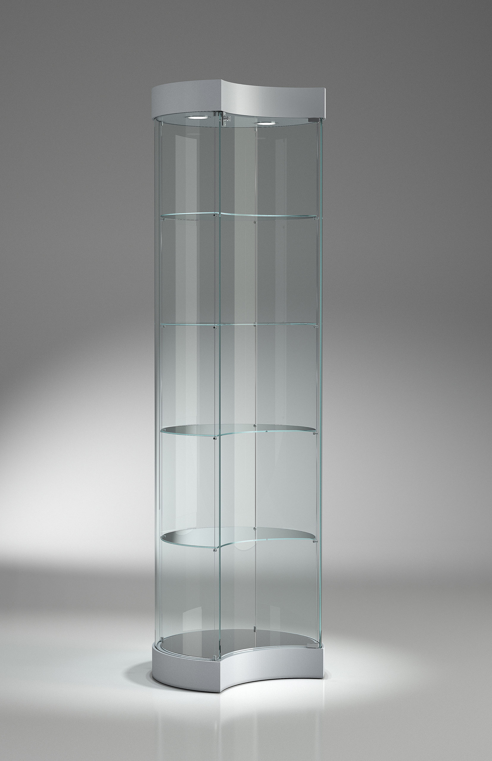 Vitrine iz Top Line linije prepoznatljive po zakrivljenom kaljenom staklu te skladnom dizajnu. Top Line liniju karakteriziraju krovišta i baze debljine 9 cm te LED stropna ili bočna rasvjeta. Ovi birani komadi namještaja su namijenjeni za uređenje trgovina nakitom ili satovima, posuđa ili kristala te kožne galanterije. Primjerene su vitrine i za izlaganje po muzejima i galerijama. Svojim skladnim dizajnom vitrine iz ove kolekcije privlačne su za uređenje stanova i kuća. Postavom ovakve vitrine oplemenit ćete svaki prostor a predmeti izloženi u njoj će se još više istaknuti. Led rasvjeta na bočnicama se može visinski pomjerati kao i same police. Svi ti detalji će Vam dati mogućnost da željeni predmet istaknete onako kako želite i kako njegova visina to zahtijeva.