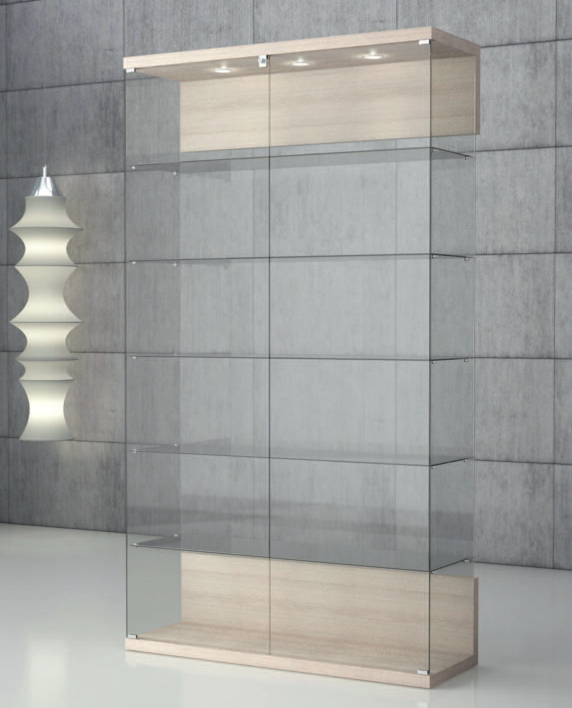 Vitrina od kaljenog stakla, krovna LED rasvjeta (3 kom), vrata s bravicom, 5 polica