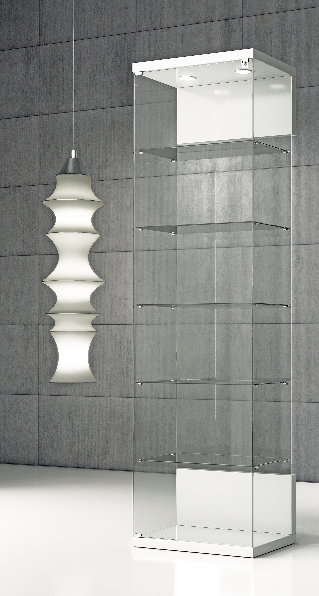 Vitrina od kaljenog stakla, krovna LED rasvjeta (2 kom), vrata s bravicom, 5 polica