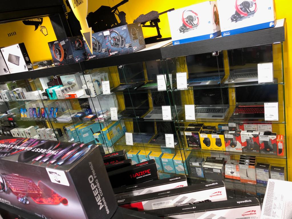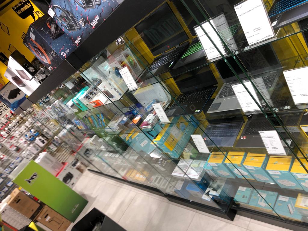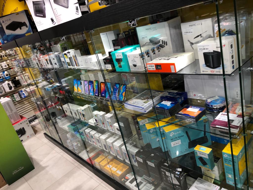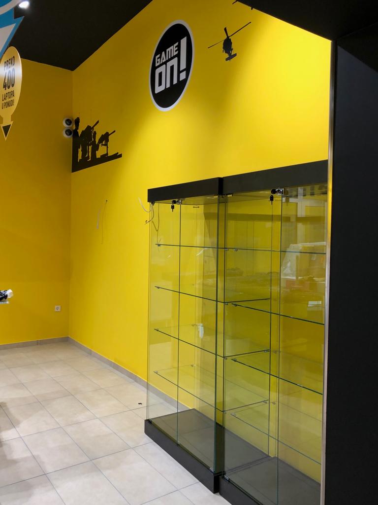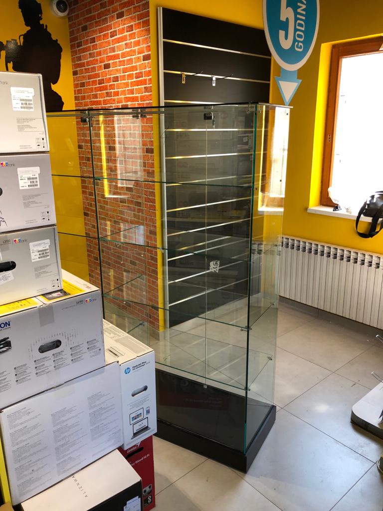 Staklene izložbene vitrine kao oprema u IT trgovinama INSTAR INFORMATIKE u Zagrebu.