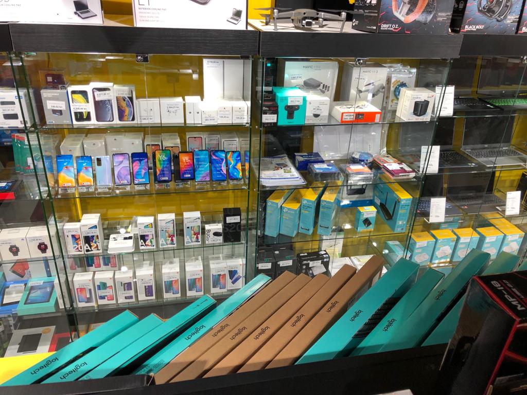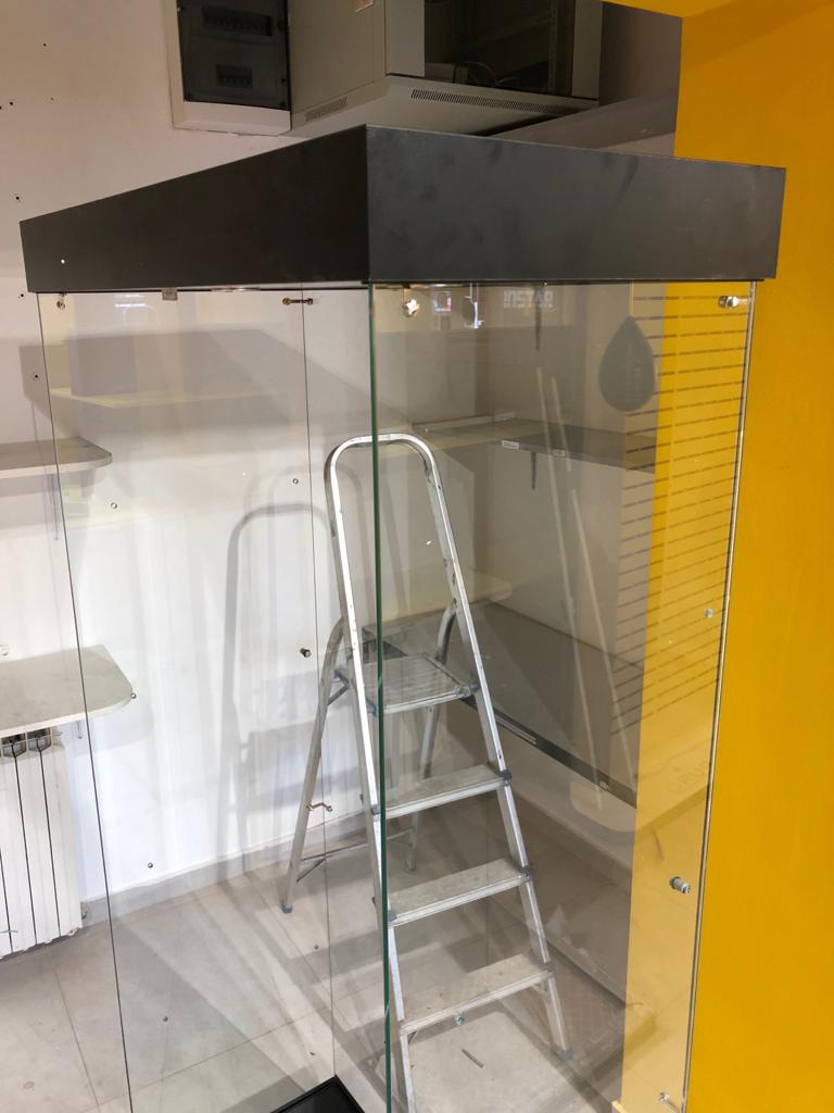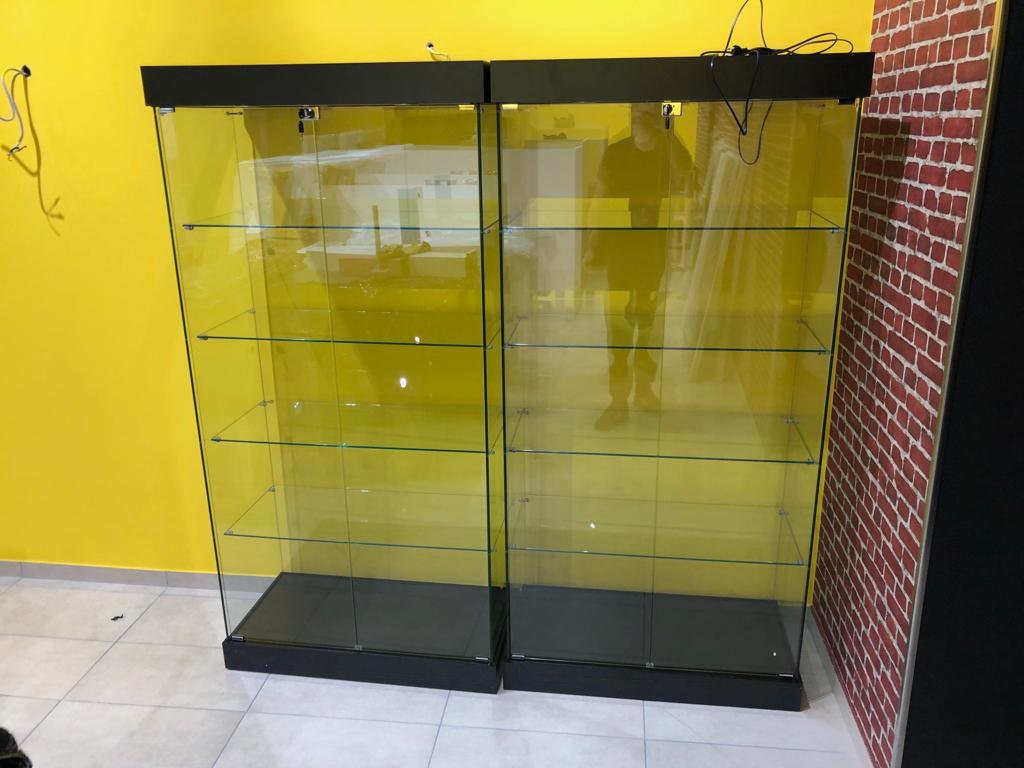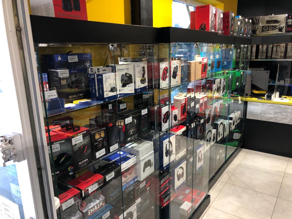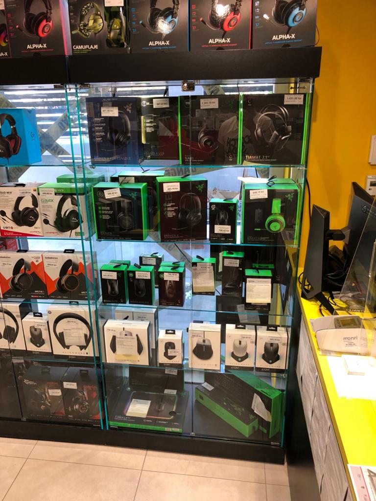 Staklene izložbene vitrine kao oprema u IT trgovinama INSTAR INFORMATIKE u Zagrebu.